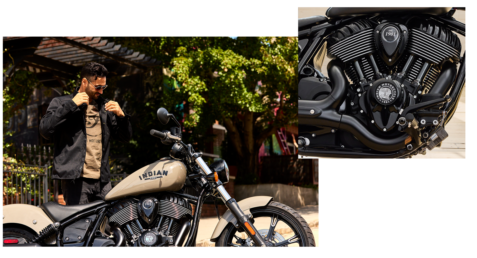 Indian Motorcycle Cruiser sind kraftvolle, mechanisch konstruierte Motorräder mit zeitlosem Stil. Der geradlinige, reduzierte Look ohne Beiwerk ist die Regel, Ledertaschen oder ein Windschild die Ausnahme.